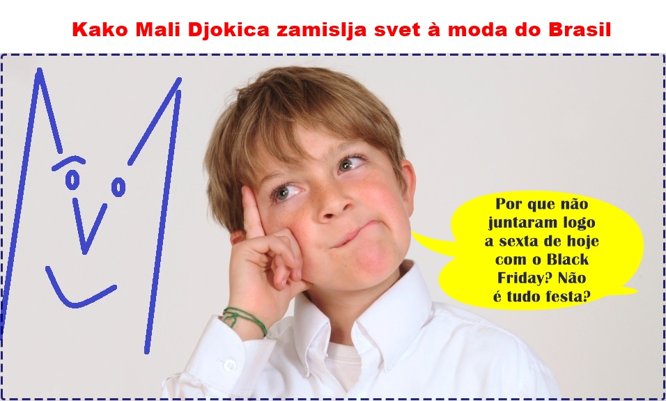 Numa feliz paralaxe (mais uma ) do humor universal, você pode e pode traduzir Mali Djokica como Juquinha . Assim, kako mali Djokica zamisla svet pode ser traduzido por 'Como o Juquinha vê o mundo'